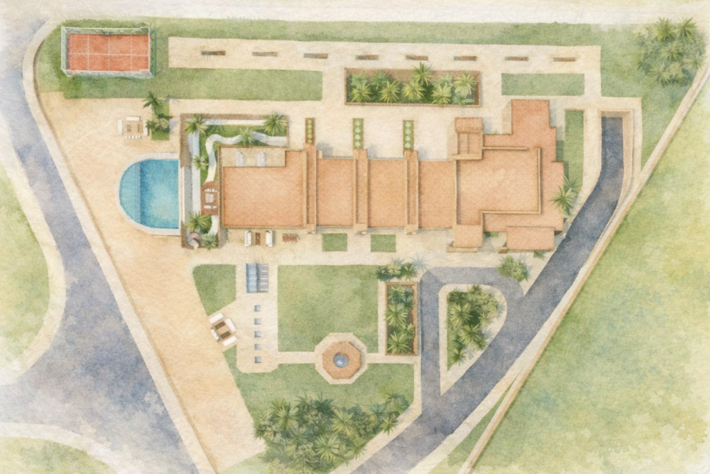 La mission de Zin Archi a consisté à réinterpréter cette vision en l’ancrant dans un langage architectural marocain, tout en assurant une intégration sensible et cohérente au site exceptionnel de la Palmeraie de Marrakech. Ce travail d’adaptation a porté à la fois sur les proportions, les matérialités et les ambiances, en s’inspirant des codes locaux et du savoir-faire artisanal.