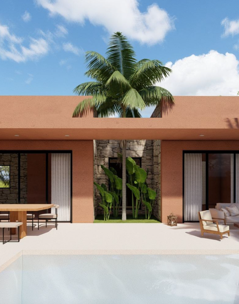 La villa 172 est implantée au sein de la résidence Amelkis III Golf Resort. Le projet développe une identité architecturale propre, conçue par l’agence Zin Archi. La composition architecturale s’appuie sur une palette teinte ocre de Marrakech & la pierre brute. L’écriture du projet vise un effet organique maîtrisé, issu du dialogue entre matériaux, végétal et volumes construits.