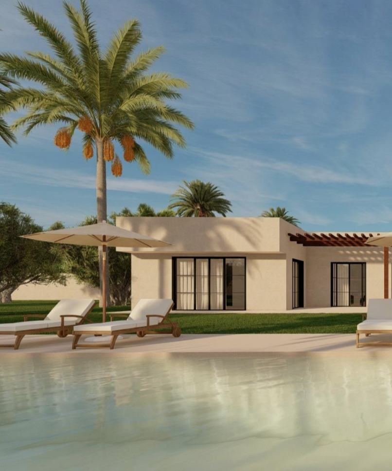 Situé sur la route de l’Ourika, le projet Shemsi s’implante au cœur d’une vaste terre agricole, dans un environnement ouvert et paisible. L’orientation du projet a été soigneusement étudiée afin de tirer parti de l’ensoleillement naturel : les espaces de vie principaux s’ouvrent vers le sud-ouest, bénéficiant d’une lumière douce en hiver et de vues dégagées sur le paysage, tandis que les ouvertures plus contrôlées au nord assurent fraîcheur et intimité.
